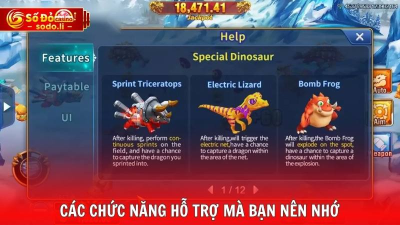 Các chức năng hỗ trợ khi chơi Jili Dinosaur Tycoon 2