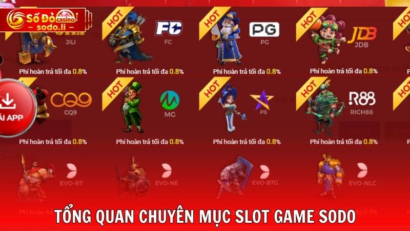 Chuyên mục hiện có tới 31 sảnh cược hấp dẫn, mỗi sảnh đều mang đến trải nghiệm độc đáo. Dưới đây là tên tuổi của 4 nhà phát hành hàng đầu hợp tác cùng slot game SODO và nhận được sự ưa chuộng của nhiều hội viên.