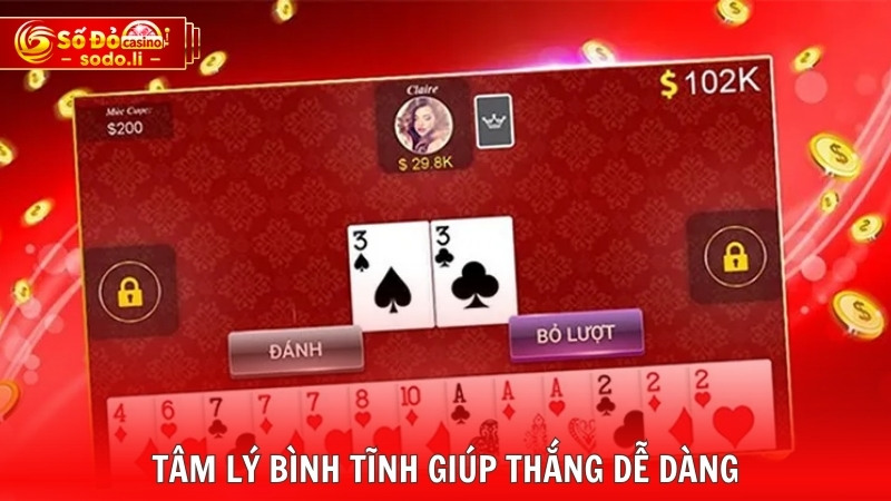 Bất kể là đánh bài tiến lên miền nam hay bất kì game bài SODO nào khác thì việc giữ bình tĩnh cho bản thân được xem là điều quan trọng nhất. Khách hàng không nên đặt khi tâm trạng không ổn định, thua quá nhiều hoặc đang trong vòng xoáy “gỡ gạc” vì khi càng đặt sẽ càng dễ thua hết. Trong lúc này người tham gia không nên tiếp tục gỡ gạc mà hãy dừng lại quan sát, đó chính là lựa chọn sáng suốt nhất để tránh bị thua mà không biết lý do.